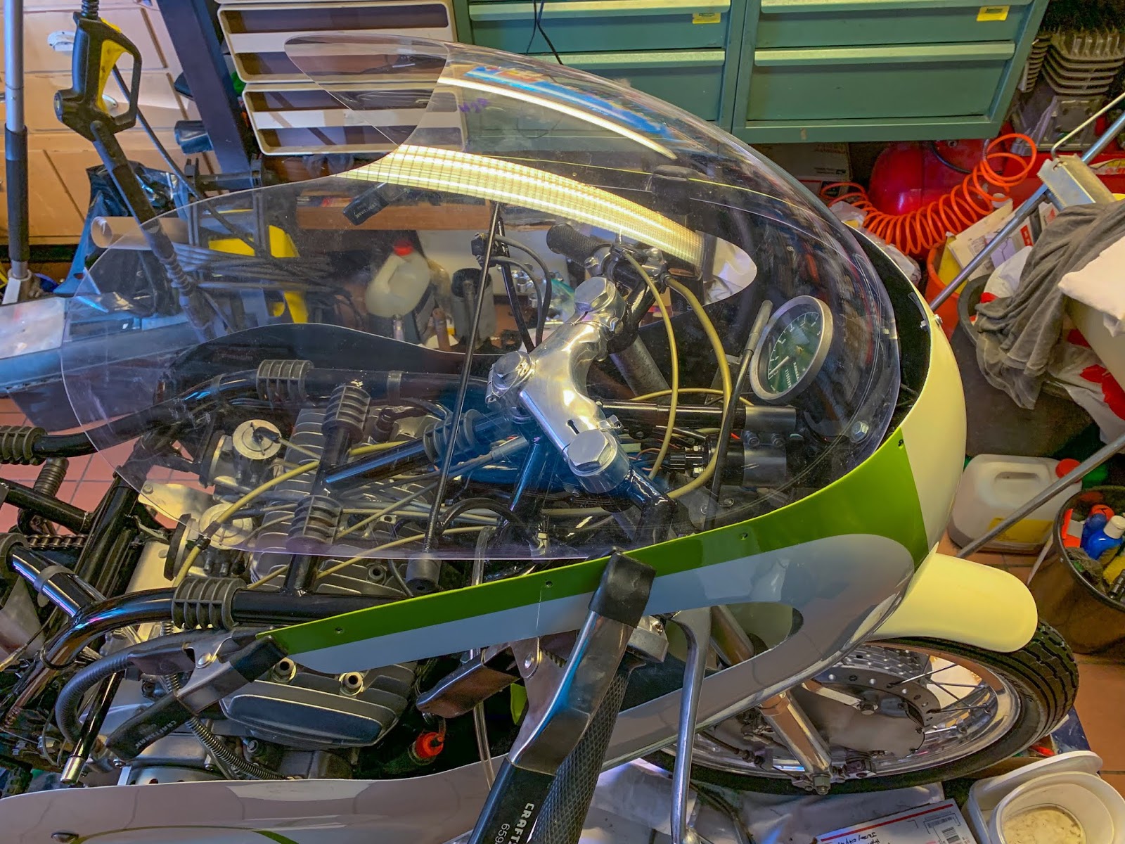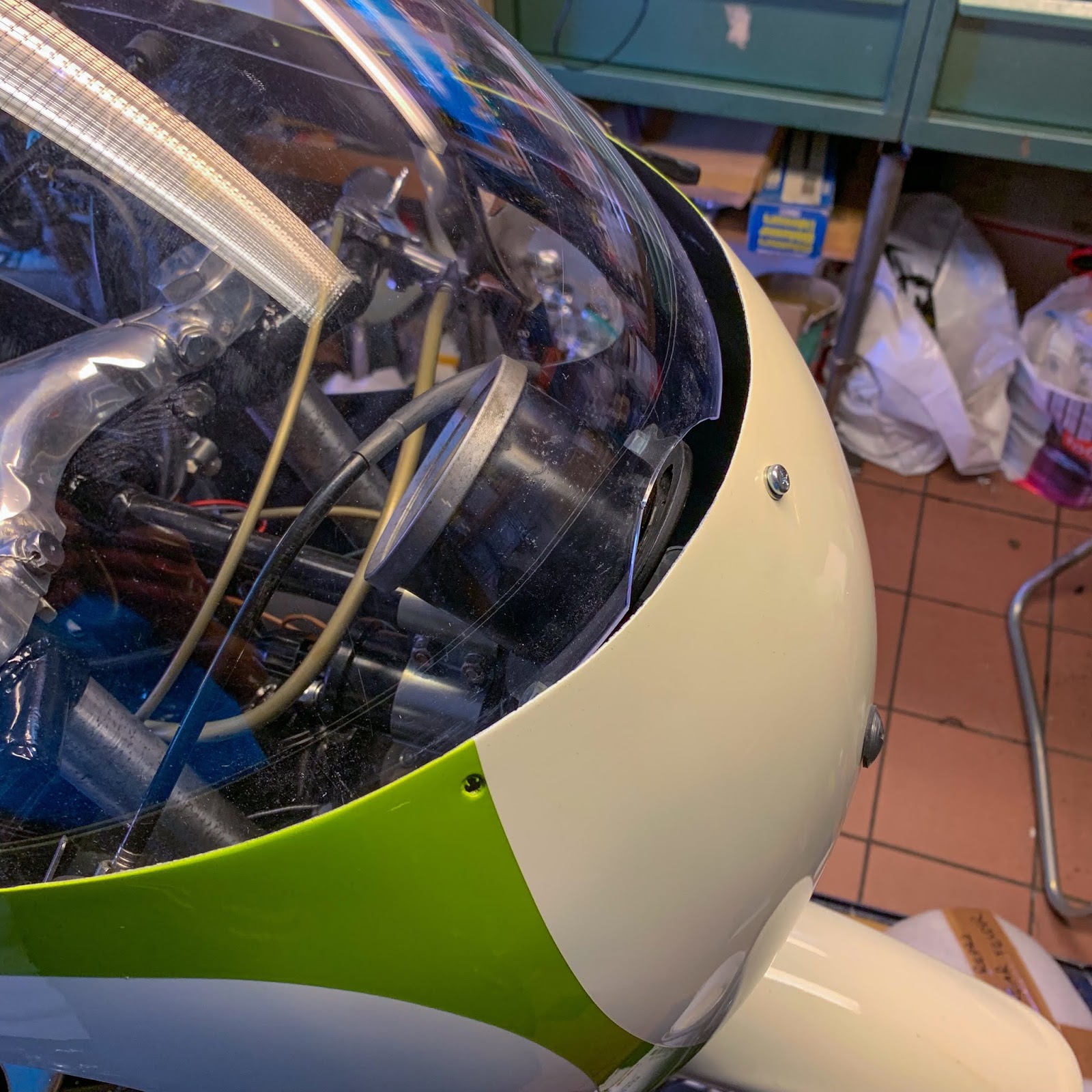 Right here we’re getting nearer… There´s ample clearance throughout the motor and pipes, even the ignition cowl is free from it. Fortunately I made my body lugs barely longer than wanted. That may be adjusted in a while for a extra good and slim match of the fairing.