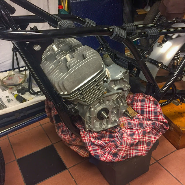 The precise lifting of the motor wanted cautious planning. My rear wheel is out of the body for rear sprocket fabrication in Tumba at ISR. That makes the body lighter to deal with so I figured this was a great time to strive lifting the engine in place.