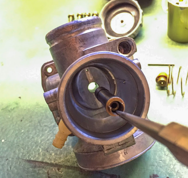 Getting the float in place, appropriately attaching to the float valve is difficult. Road bikes have a less complicated method to do that. Simply put it on high of the float valve and also you´re good. Right here it’s way more securely hooked up by an additional brass piece on the float gripping the float valve.