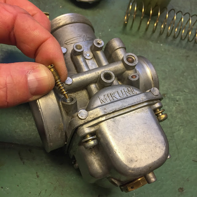 The air screw is subsequent. Cleaned and with its retaining spring. This one is screwed all the best way in after which opened 1/2 flip. That sounds a bit too little in my ears, however I´ll attempt it for now. The road bikes use 1 1/4 – 1 1/2 seems. We´ll see how that performs out after I begin her up!