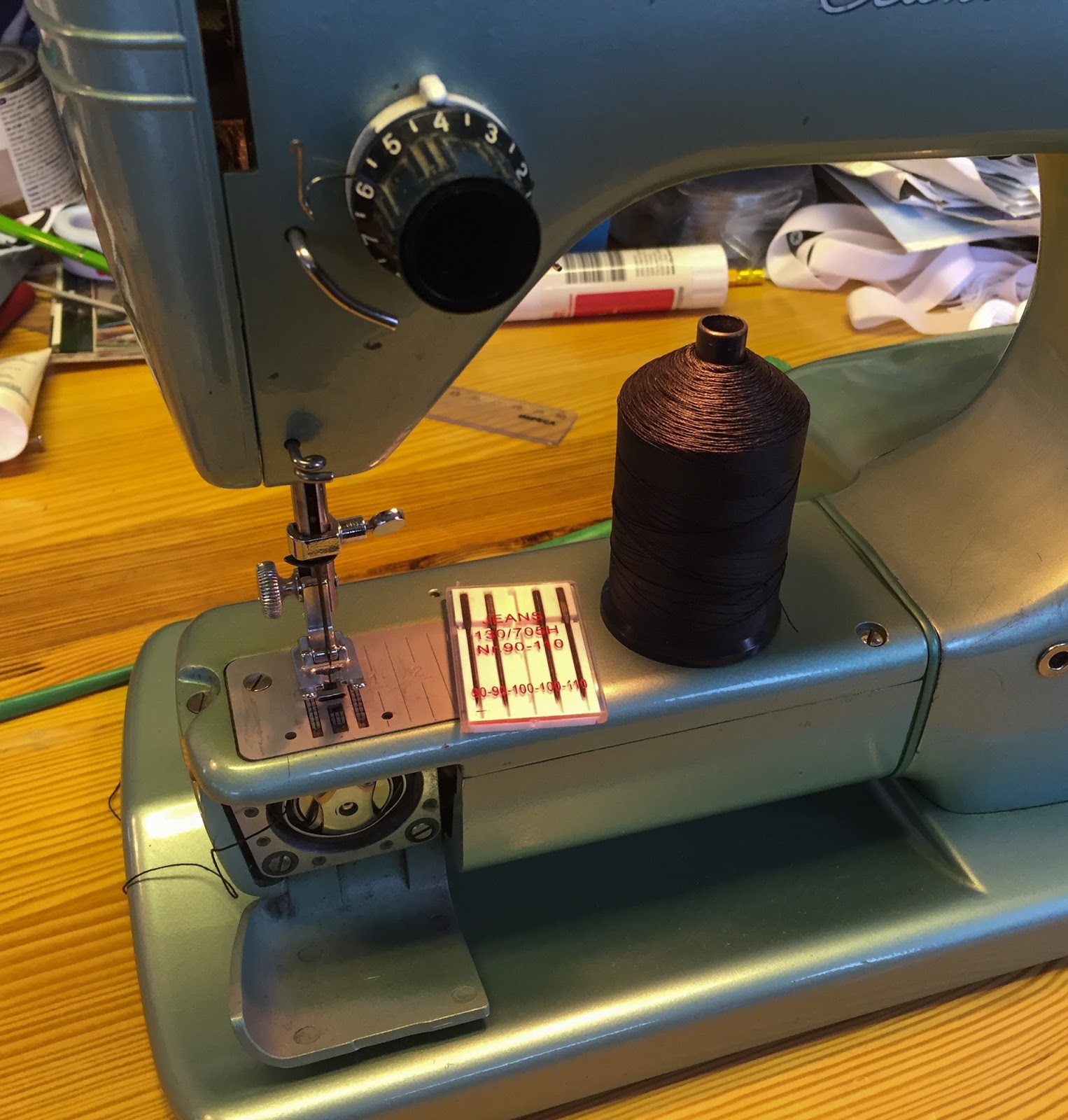 First off, loading the machine with a heavy responsibility needle, heavy responsibility cover thread from the boating provider. No huge deal! That went properly.