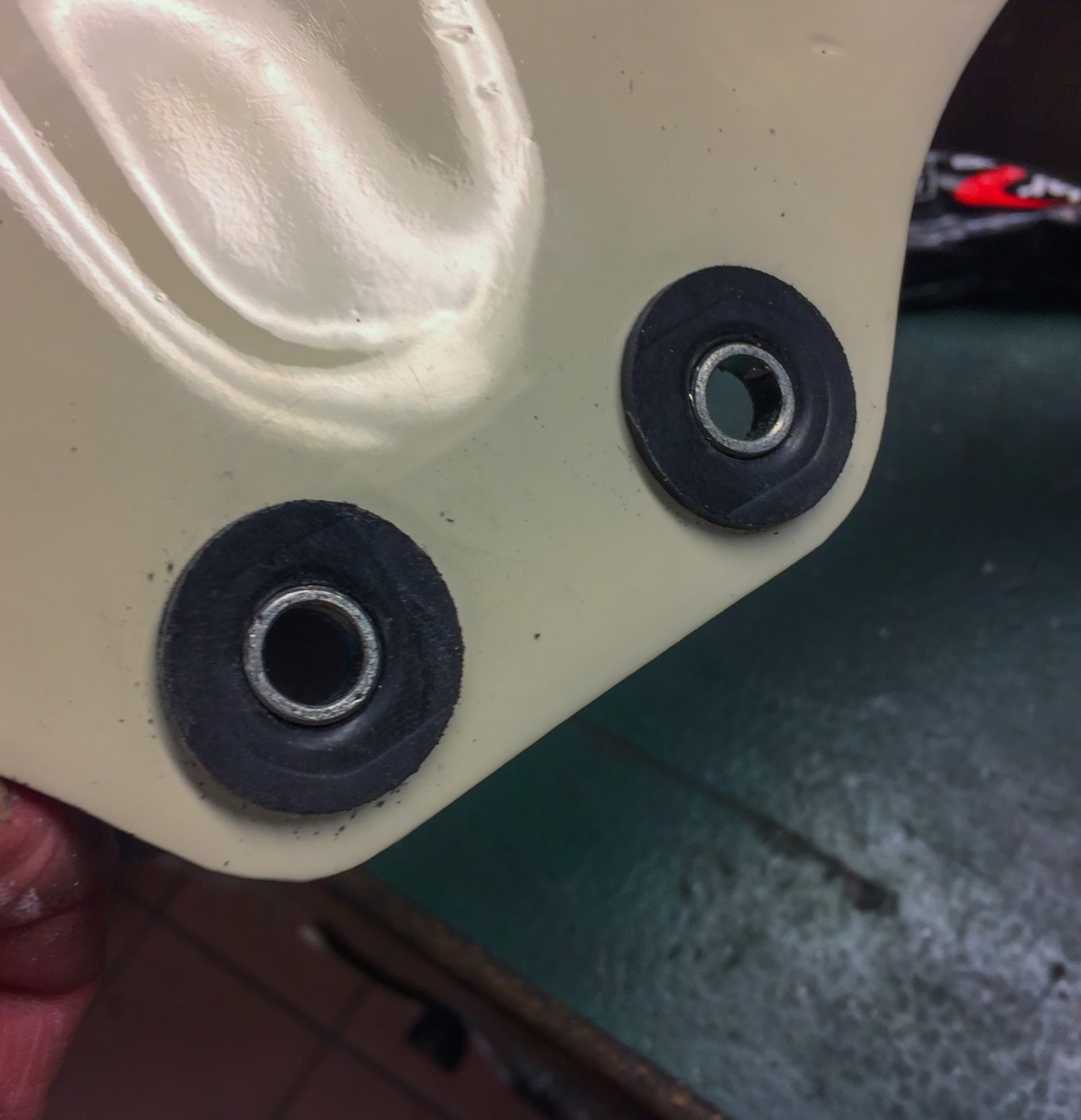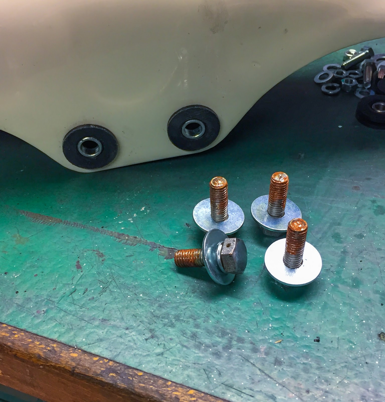 Since I selected the slimmer collars I didn´t must enlarge the holes greater than obligatory and will nonetheless use the unique mounting screws. Right here they’re, greased and able to be put in with the fender within the background.