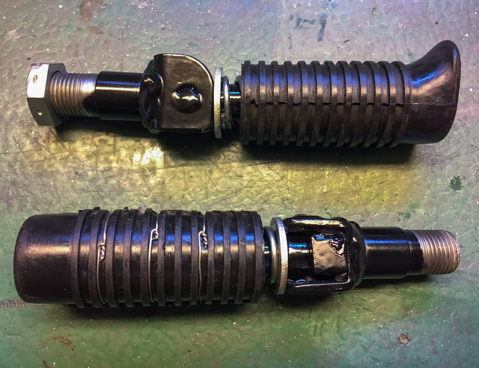 The pegs had been painted along with the body and swing and so forth. All the opposite components had been rezinked and saved in baggage. On this image we are able to see the outdated foot peg rubbers and the refurbished pegs, springs and washers. I needed to discover new locking rings, although. Gone with the wind! The one issues lacking listed below are the second washers on every peg. They go between the spring and the locking rings. A plan arose when taking a look at these components… I used to be questioning if I may reuse the outdated foot peg rubbers as a substitute of placing on new ones… You already know, I wish to reuse as a lot as attainable right here. The one drawback was certainly one of them was cracked partly and that wouldn´t look too good. I got here up with an answer!