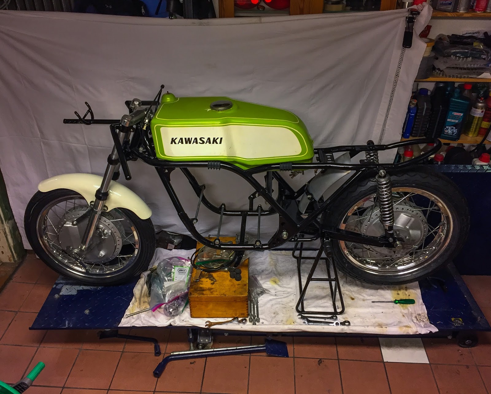 The subsequent step could possibly be placing the engine within the body. Or I´ll proceed engaged on the chassis some extra. The RPM indicator, the deal with bar levers and cables all have to get on there. We´ll see. For now I´m very blissful to see it with the wheels on!