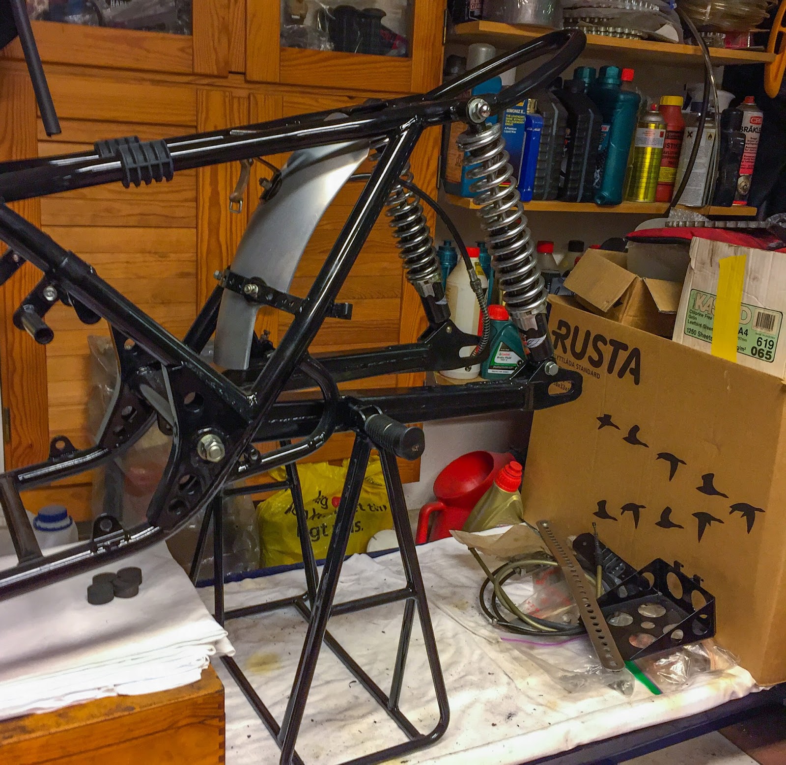 Right here it’s on the bike. I had it on and off about 3 times earlier than realizing I had all of it incorrect anyway… The brake resting level adjusting screw shall be inserted the opposite method round first with the locking nut on high of the body bracket earlier than placing the foot peg on. I´ll repair this later… Subsequent up was the entrance fender mounting!