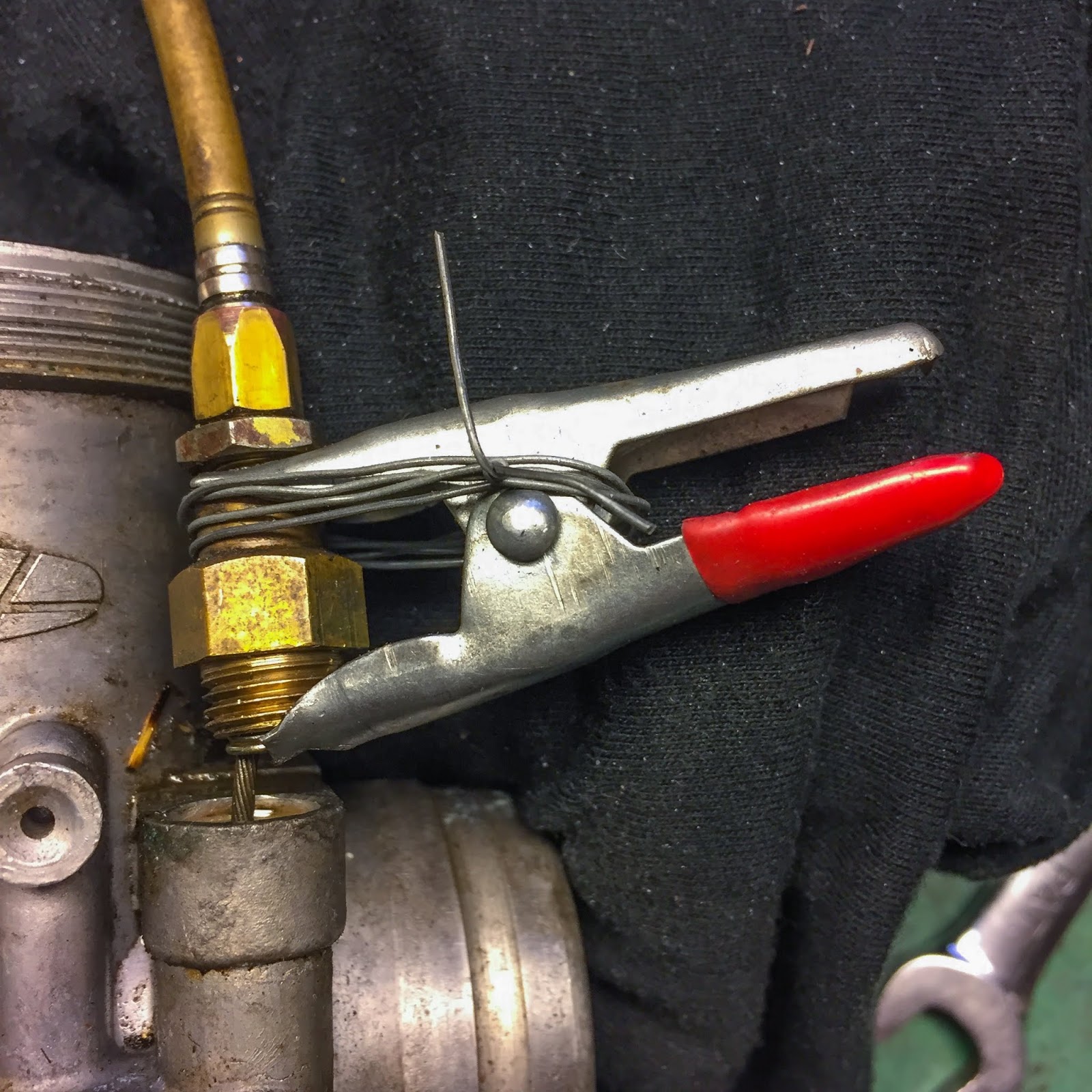 Again from work I began that plan. It concerned making a few instruments to get to the caught factor contained in the carburetor physique. First i needed to make a device to get the spring out of the best way with a view to attain the plunger with the opposite device. I made my very own “spring retaining device” out of an outdated clamp I had within the storage. I made a big slit on the backside half and a smaller one on prime. My plan was to carry the spring compressed contained in the brass housing whereas I fettled with the plunger.