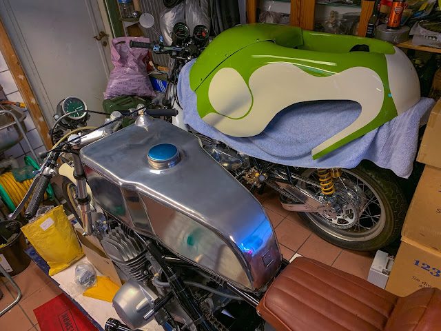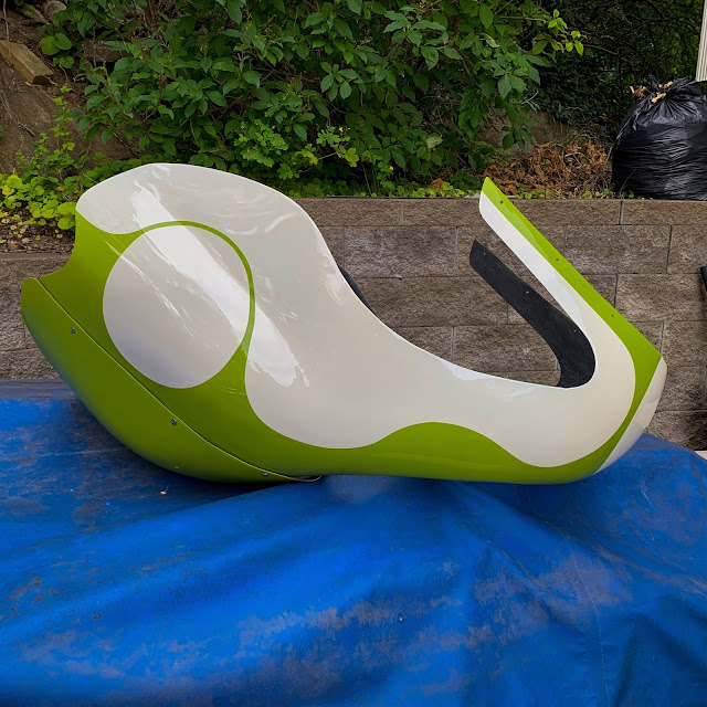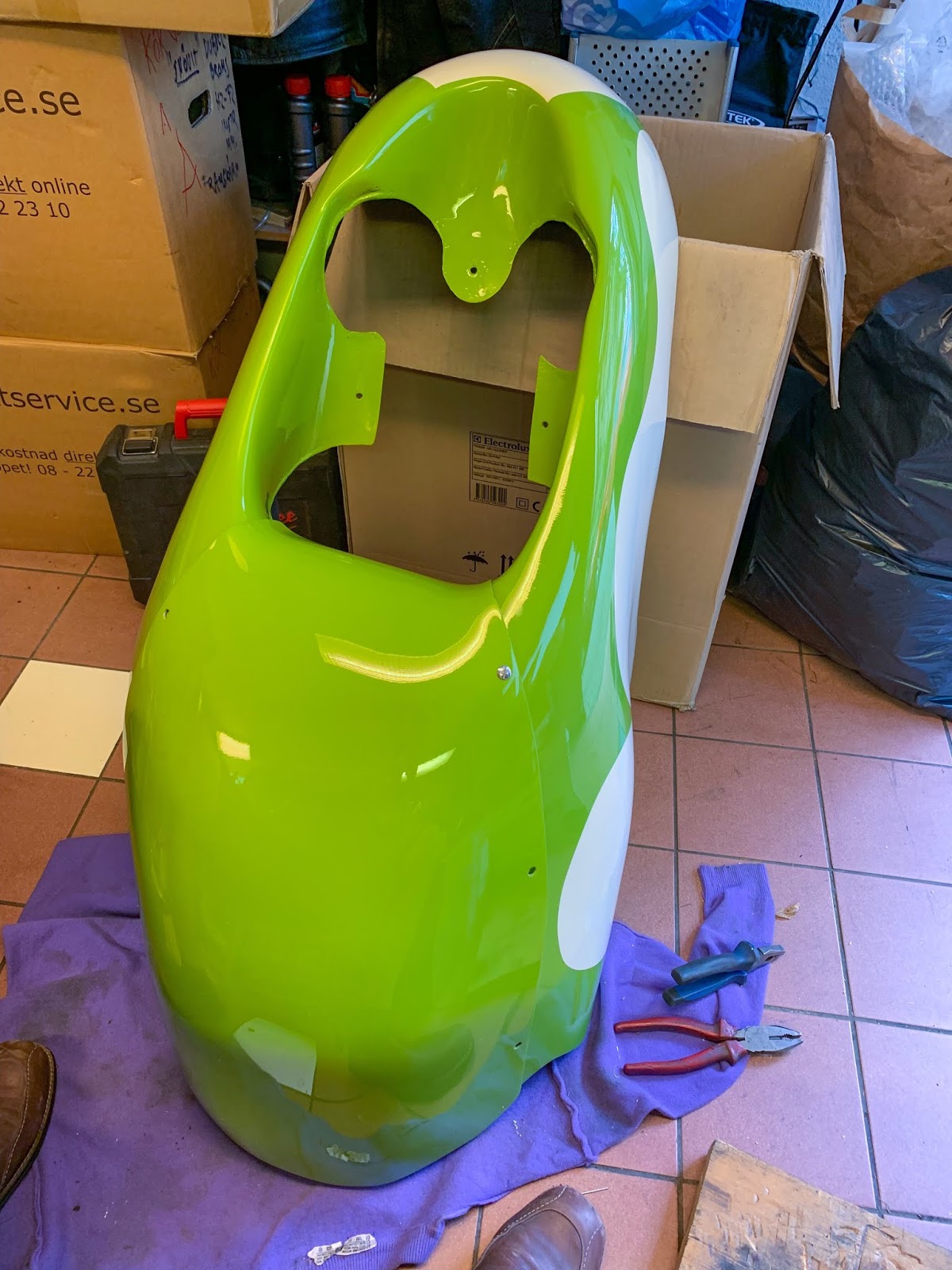 The fairing getting increasingly full. Quickly time to attempt to match it to the bike.
