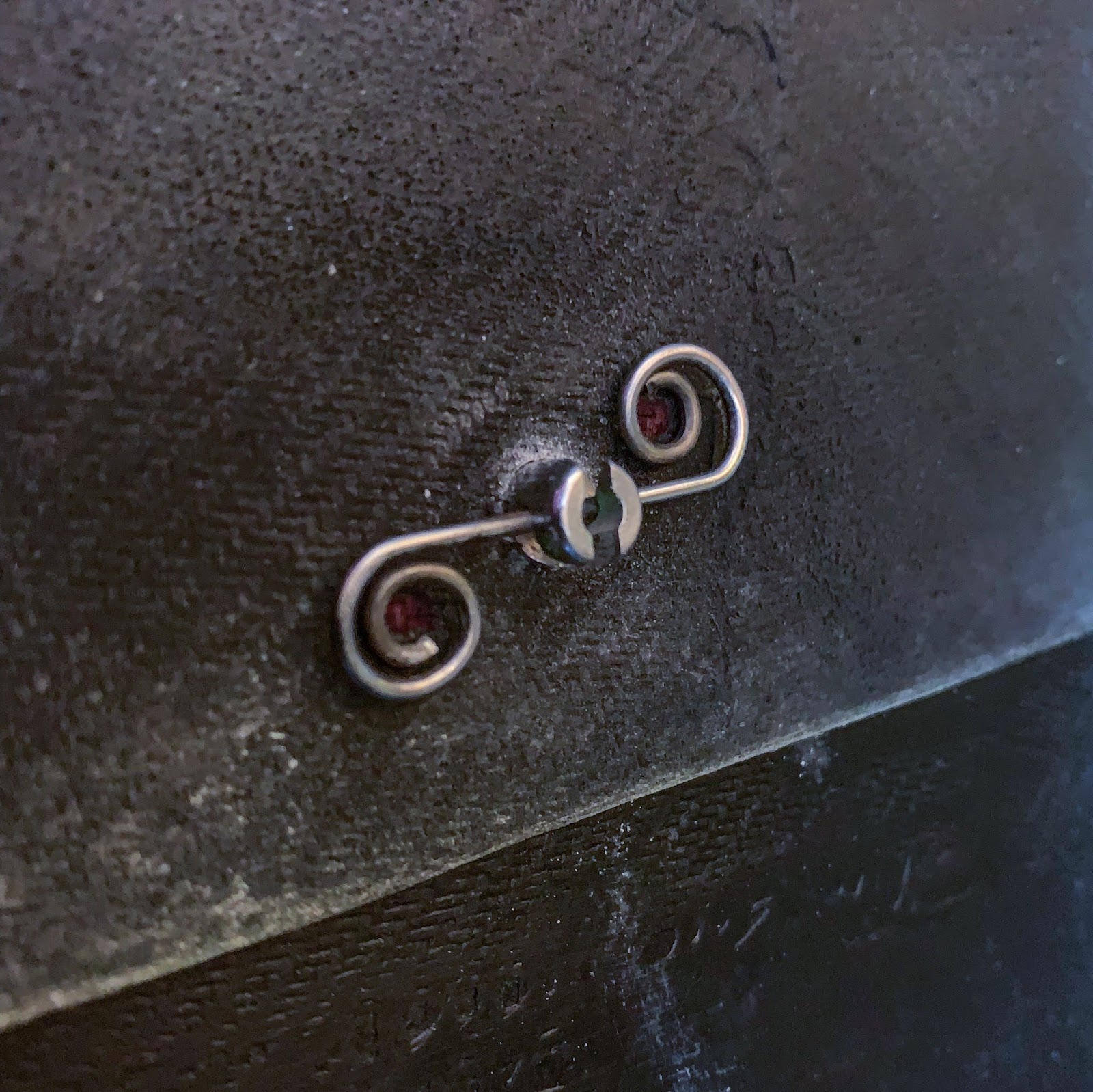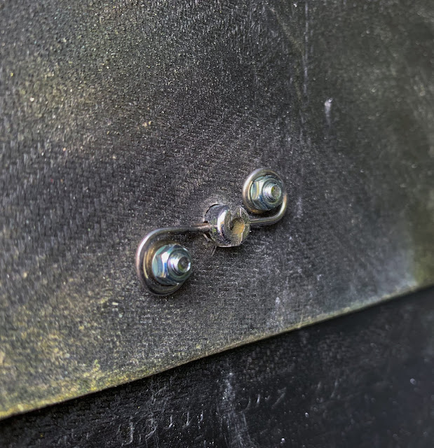 The completed Dzus spring connected to the fairing with all unique NOS M3 screws, washers and nuts. Completely nuts, however NOS is NOS!