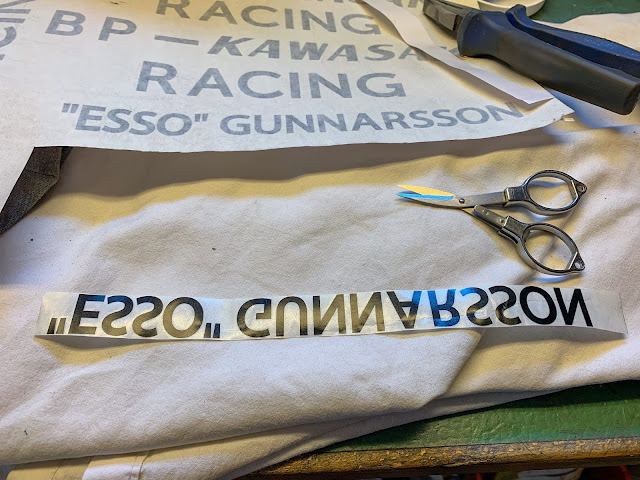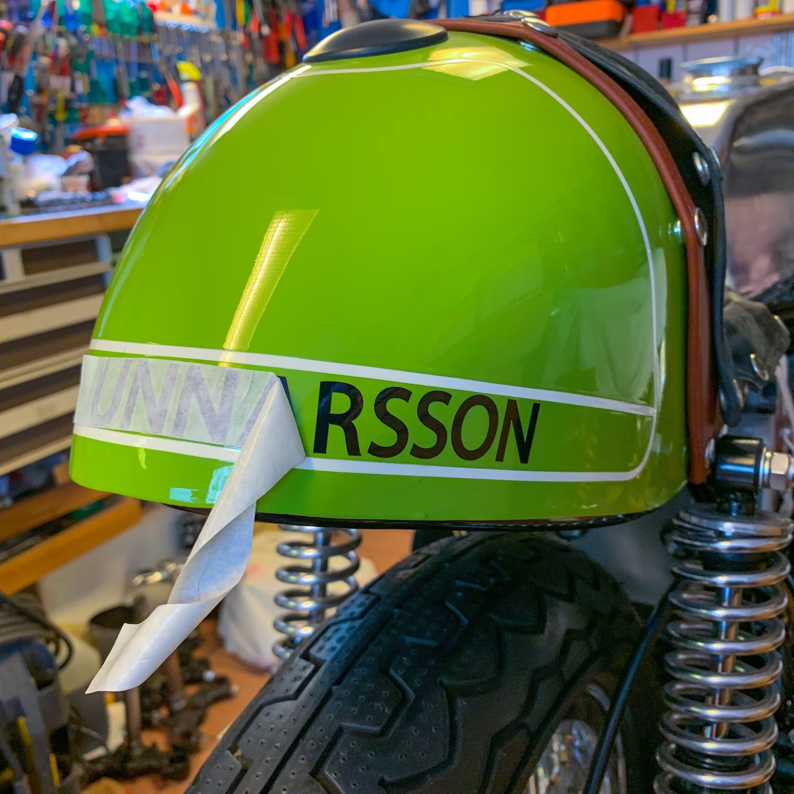 Subsequent I used to be planning to attempt to connect the decals behind the seat. The textual content, “ESSO” GUNNARSSON, shall be between the 2 white traces on the backside of the seat cowl.