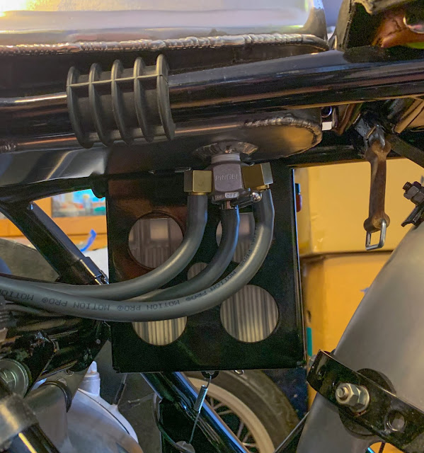 One other small drawback surfaced in my communication with the race chief for the parade. All open vents on the bike have to finish in a container of some type. First, lets´take care of the air vent hose from the gas tank.