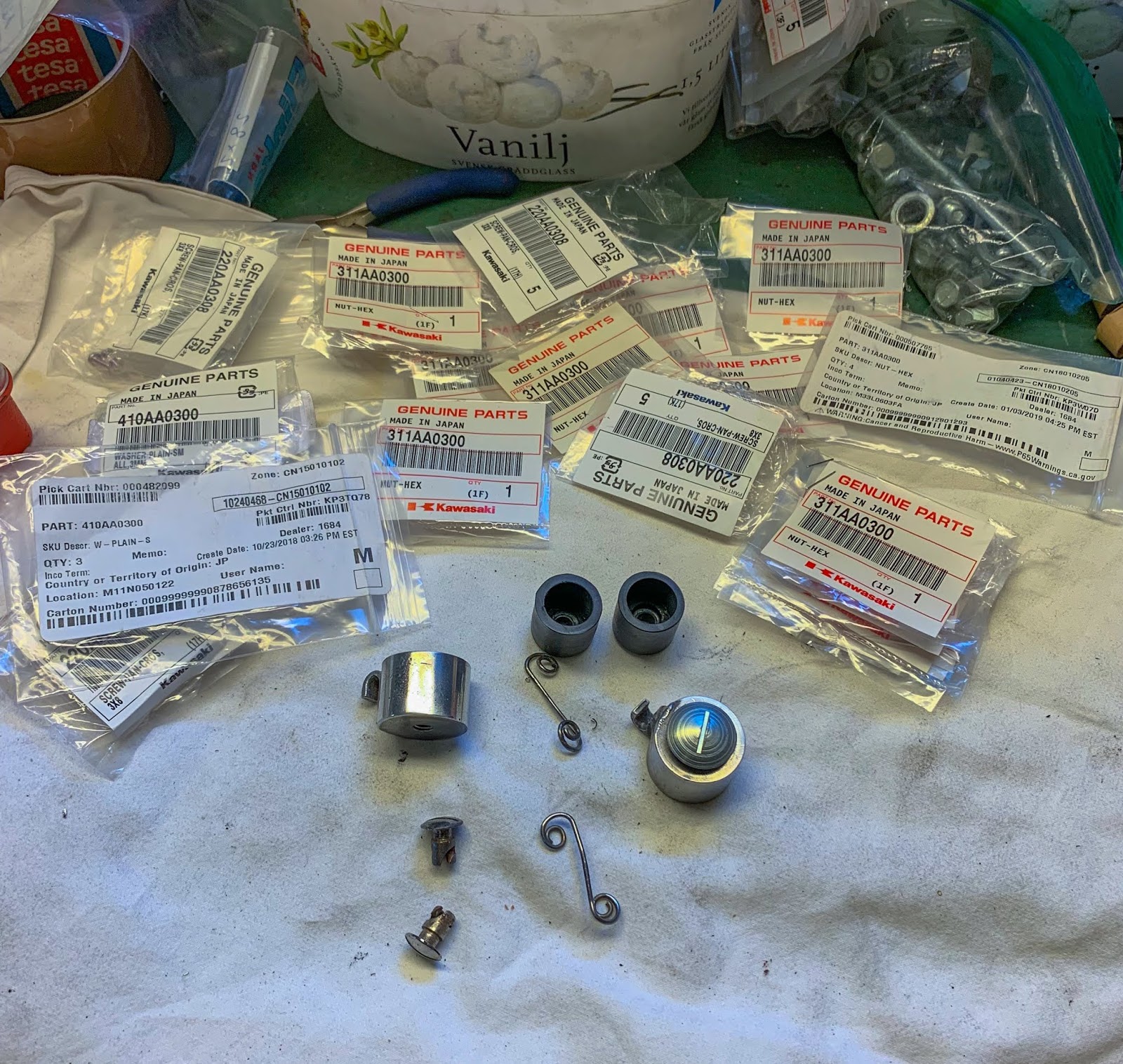Right here I´m getting ready the remainder of the components for the fairing. The “cups”, the re fabricated rubber cups and some further Dzus components. All these half luggage held the NOS screws, washers and nuts for the fairing.