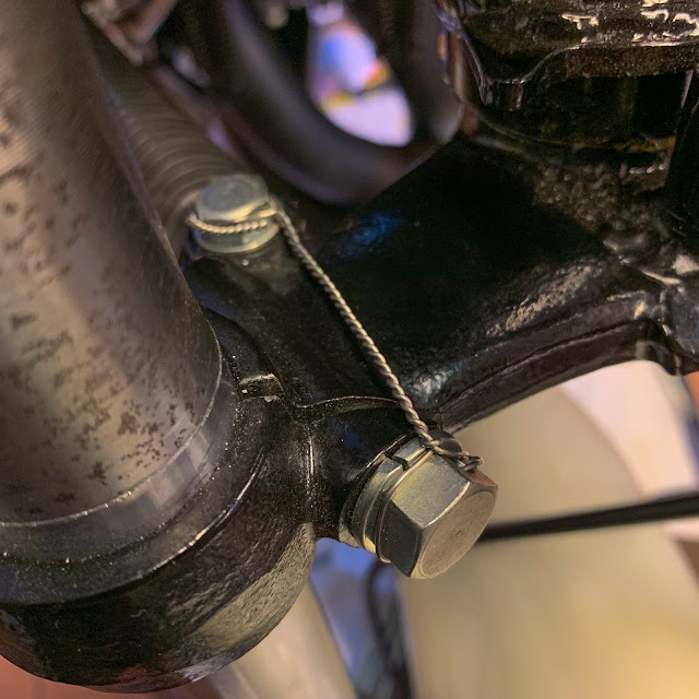 Yeah, fairly just a few, truly. Right here´s the steering damper and the decrease triple tree fork pinch bolt carried out.
